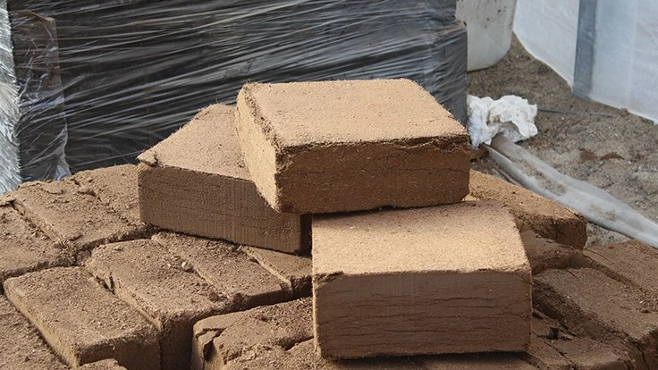 In addition to coir used in slabs or bags for growing vine crops, coconut coir is also available in smaller block and plug forms for seedling propagation. The fiber is shredded and ground, similar to slabs. However, unlike the traditional plastic wrap used to stabilize slabs, the loose material for blocks and plugs is bound physically, with a net or paper wrapping, or chemically, with a biopolymer binder, to minimize the loss of substrate into the nutrient solution and hydroponic system.